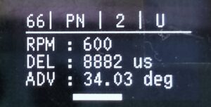 Knowing the pickup time, the spark time and the RPM, the micro-controller then calculates and display the ignition advance timing on an OLED screen.